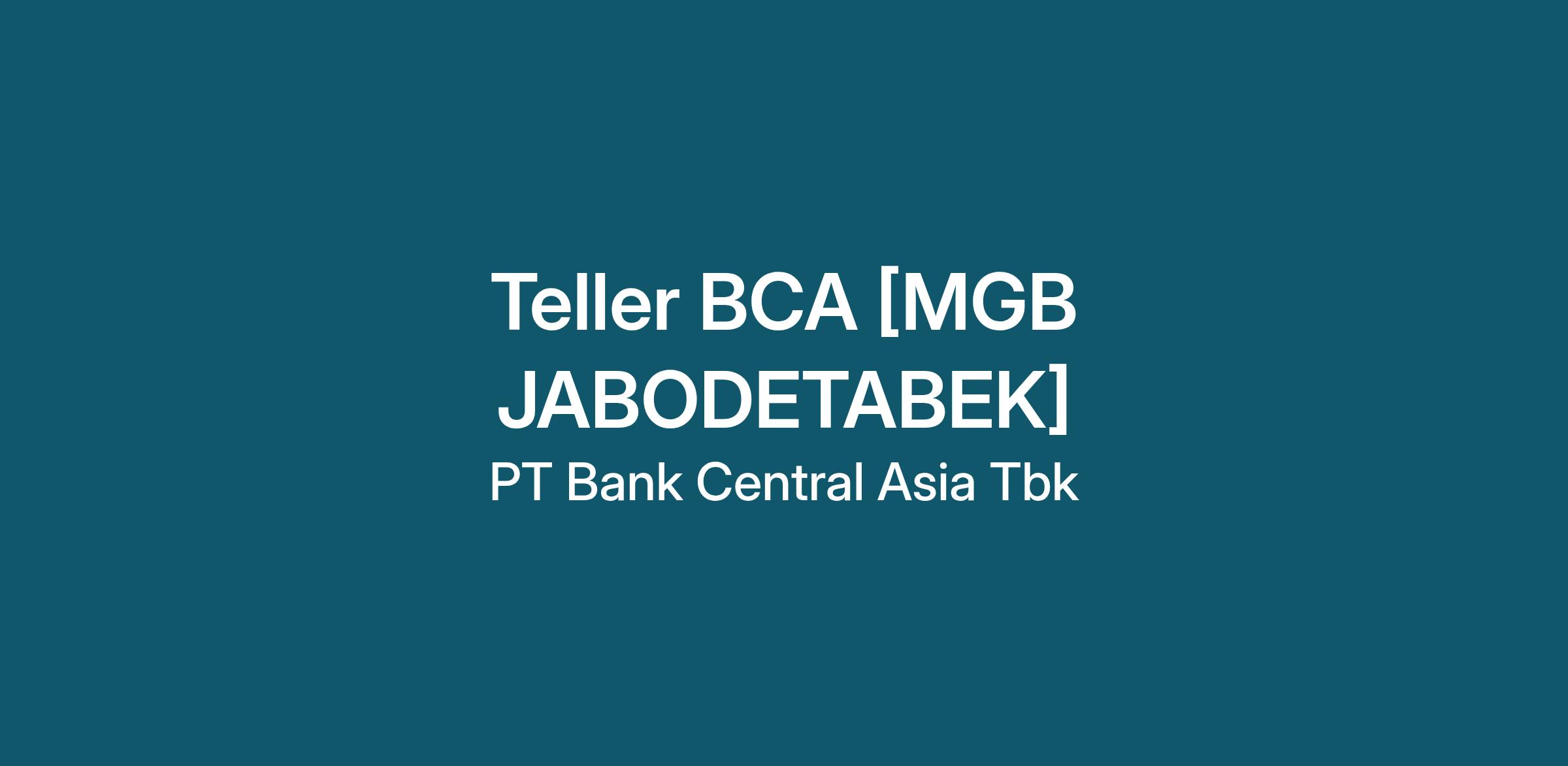 - Bersedia ditempatkan di seluruh cabang BCA di wilayah kota seleksi area Jabodetabek